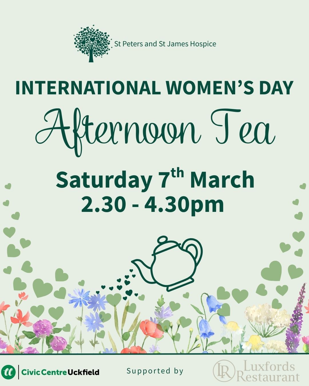 In celebration of International Women’s Day, St Peter & St James Hospice invite you to join their International Women’s Day Afternoon Tea.