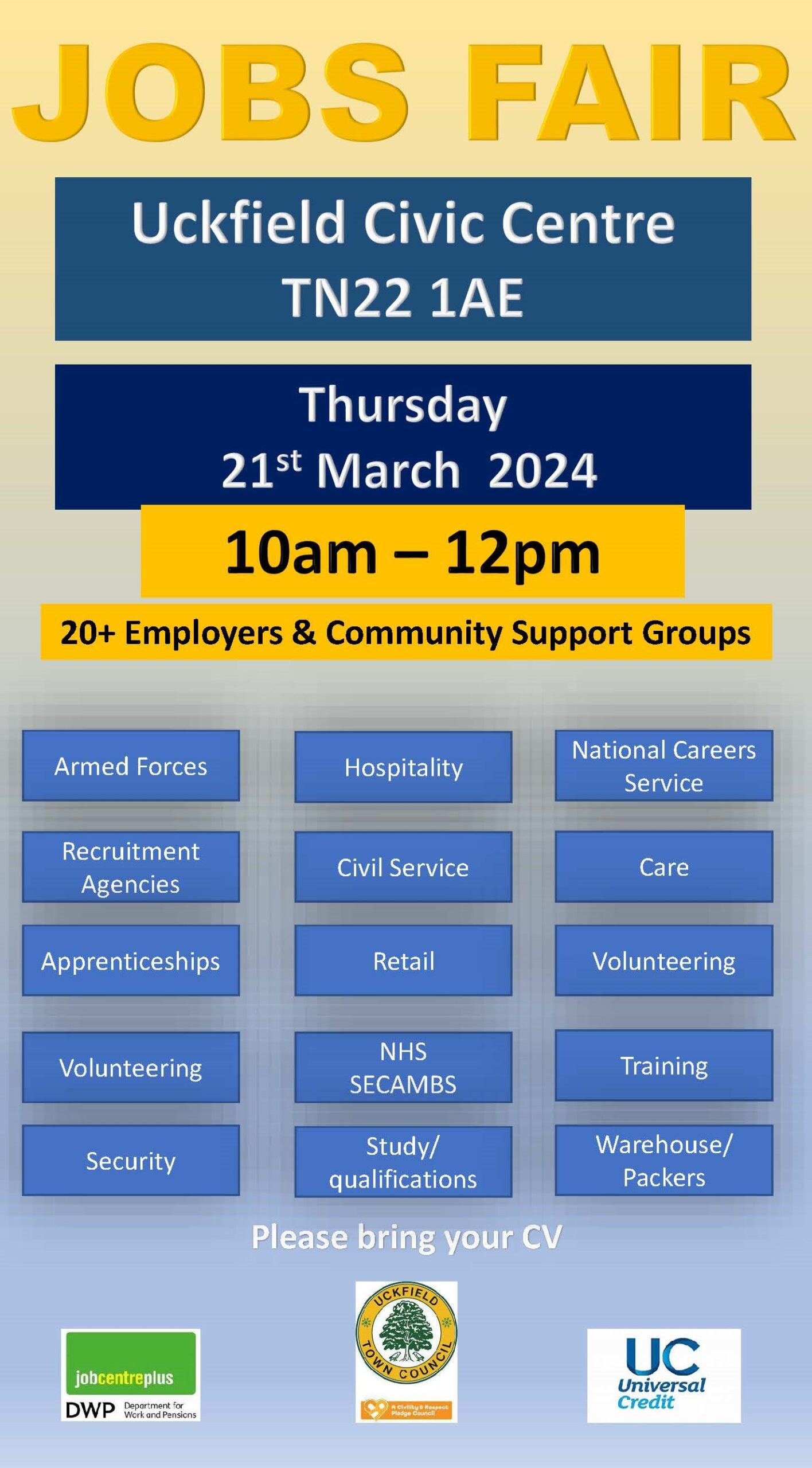 Hosted by Jobcentre Plus Sussex, the latest Jobs Fair in Uckfield offers those looking for a new career a wide range of options.